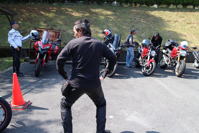 気温も上がり、みなさん和気藹々とお互いのバイクを観察しながらの談笑であっという間に時間が過ぎます。 |